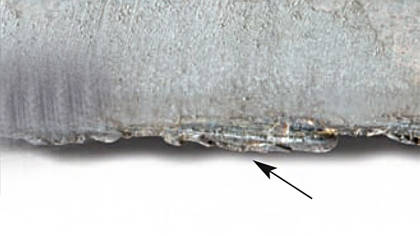 Anmerkung: Neben der Geschwindigkeit können sich auch die Materialchemie und die Oberflächengüte auf die Bartbildung auswirken. Je mehr sich das Werkstück aufheizt, desto eher kommt es bei den nachfolgenden Schnitten zu Bartbildung.